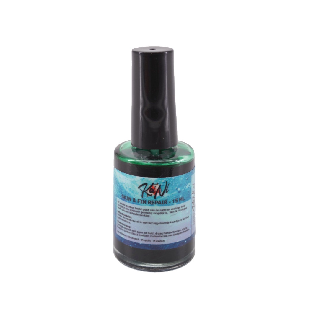 Skin & Fin Repair 15 ml van KoiNL is een verzorgende vloeistof die speciaal ontwikkeld is om beschadigde huid en vinnen van Koi doelgericht te ondersteunen bij het herstel. Deze verzachtende en beschermende formule vormt een ademende laag over de wond, waardoor genezing wordt versneld en het risico op infectie wordt verminderd.