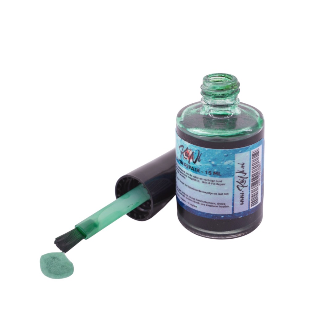 Breng een kleine hoeveelheid Skin & Fin Repair aan op de beschadigde plek met het kwastje