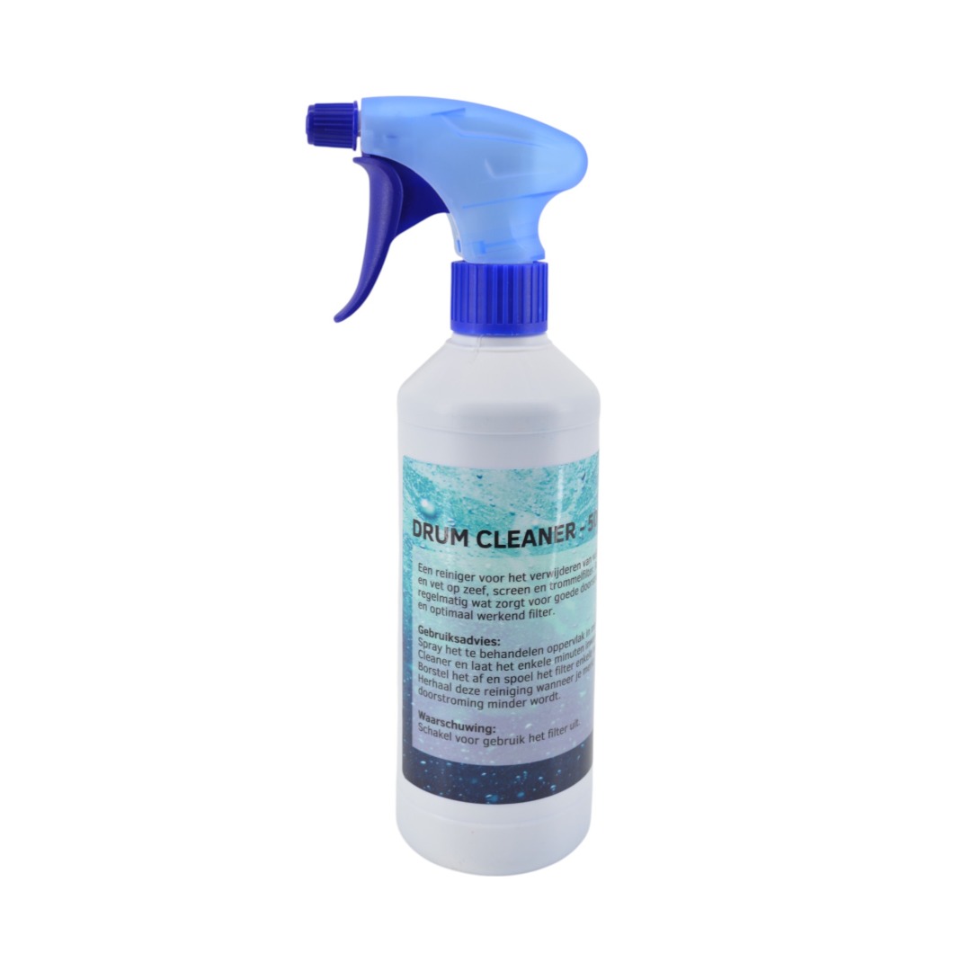 De Drumcleaner van KoiNL is speciaal ontwikkeld voor het effectief reinigen van onderdelen van je trommelfilter en andere technische vijverinstallaties. Deze krachtige reiniger verwijdert vuilresten, vet, biofilm en aanslag die zich na verloop van tijd ophopen op zeefdoeken, spoelarmen, sensoren en behuizing. Regelmatig reinigen met Drumcleaner verlengt de levensduur van je filter en zorgt voor optimale werking.